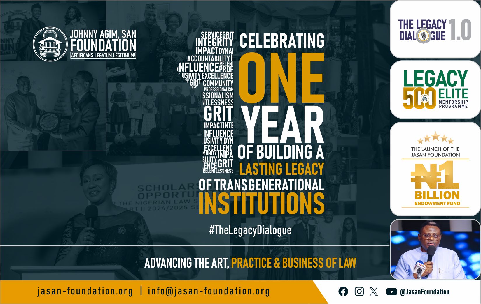 At the core of its purpose, JASAN Foundation functions as a legal legacy building institution, that is building a legacy of human, legal, judicial and corporate institutions, across generations through an established law, practice, or culture of operations and legal practice business protocol that ultimately builds the man [the young lawyer], through a deliberate mandate and foundation to becoming an institution.