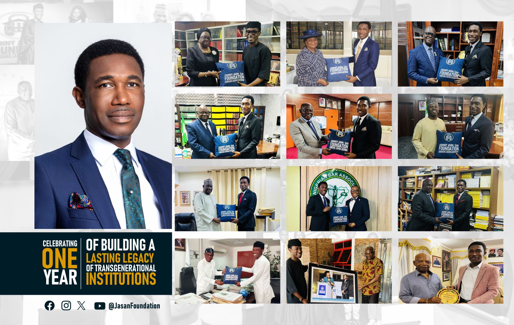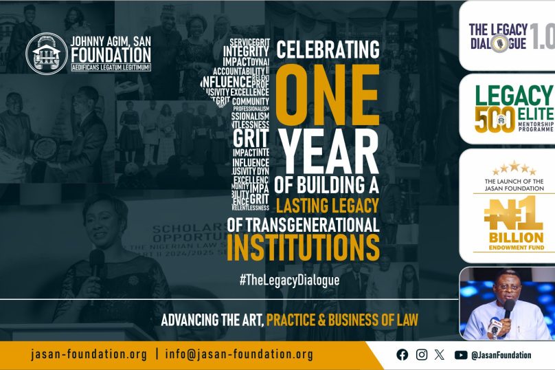 On 13th September 2024, the Johnny Agim, SAN Foundation [“JASANFoundation”] was officially launched, along with the N1Billion JASAN Foundation Endowment Fund for the #Legacy500 Elite Sponsorship and Scholarship Programme; and today, makes it one remarkable year of building a legacy of transgenerational institutions… one step at a time.