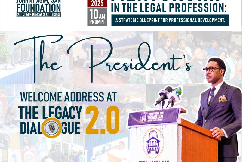 Once again, I welcome you on behalf of the Board and management of the Johnny Agim, SAN Foundation [also known as “JASAN Foundation”] to the 2nd edition of the “LEGACY DIALOGUE” tagged #TheLegacyDialogue2.0 holding here in Abuja, the Federal Capital City of Nigeria.